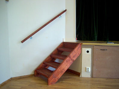 Nå ble også trappen opp til scenens forside (4 trinn mot tidligere 3 trinn) lagt på plass.