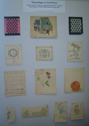Illusrasjoner laget av Olaf Olsen, født i Bergen 1916 (gikk på døveskole i Trondheom 1923-30(?)).
