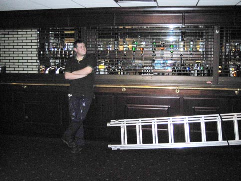 Denne mannen ble tilkalt for å rette på flomlyset i møtelokalet. Han ventet litt, til foredraget var ferdig.
