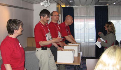 Deltakerne fikk delt ut programhefte, matbilletter og litt til. Noen fikk også T-skjorter med jubileumslogo