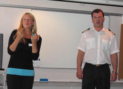 Døvetolk Heidi Otterå tolket kapteinens velkomsthilsen