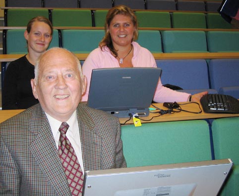 Døvblitte Bjørn Ruste, "tekst-på-tv"-forkjemperen, hadde skrivetolkene med seg.