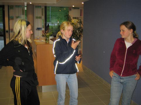 Ungdomstrinnets elever (8.-10. klasse) var tilstede som en del av samfunnsfag, der de for tiden har valg, storting etc. på timeplanen. Her ser vi Iselin rose SV-politikeren (se bildet under). Til venstre: Sara. Til høyre: Stine Mette.