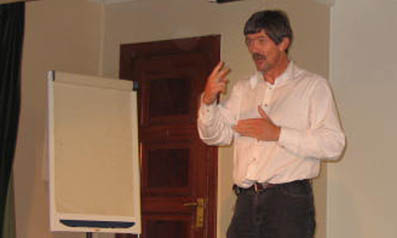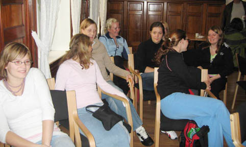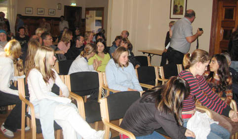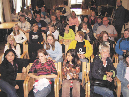 Torsdag 8. september var det store forventninger til ungdommenes talentkonkurranse. 9 unge mellom 14 og 18 år hadde meldt seg på (minstekrav var 5 deltakere). Av ulike grunner ble antallet kortet ned til under 5 deltakere, så konkurransen er utsatt til desember. Poenget er å få unge til å bli scenevant, opptre litt - alene eller i grupper, få premier, og kanskje etterhvert bli interessert i kultur, teater osv. Istedenfor var det daglig leder (bildet nederst på siden) som orienterte om åpning av rådgivningskontor, om valget mandag 12. sept., om møtet 10. november der vi skal diskutere hva pengene ved salg av feriehjemmet skal brukes til, om møtet 27. november der vi skal diskutere døvesenterets framtid o.a. Mange studenter fra tegnspråklinjen ved HiB var også tilstede.