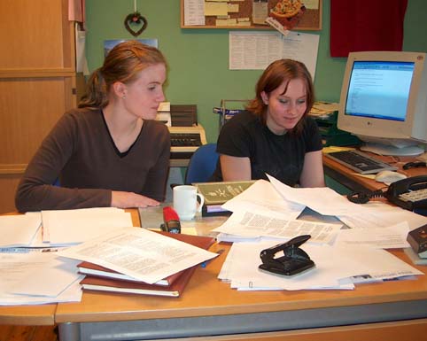 Linda og Eivor holder på å skrive brev og er i konsentrasjon.