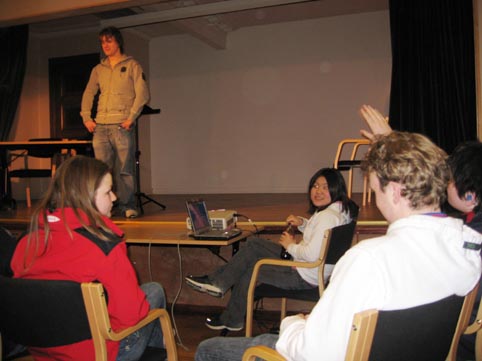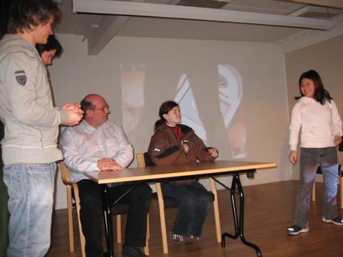 Ungdomsklubben hadde styremøte to timer i forveien. Til venstre ser vi Egil Johansen. Ungdomsklubben ble enige på forrige møte om å ha en fast representant fra senterstyret på styremøtene deres. Egil er også eiendomsleder og god å disktere med mht bruk av lokaler, plass av aktivitetsutstyr osv.