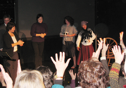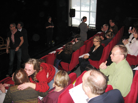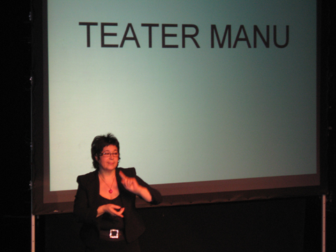 Mira Zuckermann fortalte kort om "Tegnspråkteateret" som senere ble til "Teater Manu". De nye publikums-stolene kom på plass for en uke siden og vi var de første som fikk bruke dem. Stolene er fastmontert, men kan skyves inn og ut. Ellers fortalte hun at det var laget egen DVD/CD med klipp fra ulike kunstneriske arbeid vist fra scene og på TV fra 1992 til 2006. Døveforeningene kunne få et eksemplar hver.