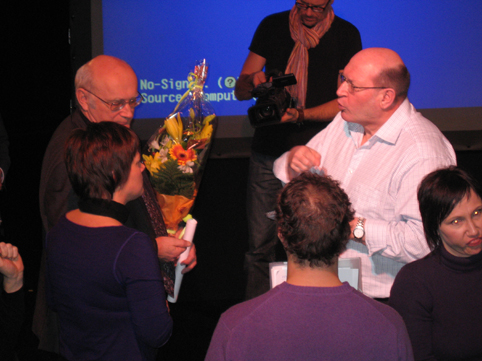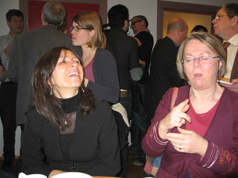 Lars Åke Wikström uttrykker sin store glede over Liisa Kauppinens innsats for døvesaken hos verdens viktigste organisasjon: FN! Liisa har forhåpentligvis fått mange i FN til å forstå at tegnspråk er et språk på lik linje med andre språk (men at det ikke er lett å få det statfestet). Lars Åke sa at Liisa sluttet i styret for WFD (World Federation of the Deaf) for noen år siden, og hadde all grunn til å lene seg tilbake i en gyngestol og ta livet med ro. Men nei, hun er fortsatt aktiv - og har kontakt med FNs folk som topp-prioritet.
