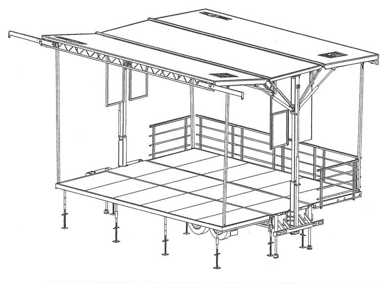 Vi har bestilt leie av en mobil scene fra Grønt avdeling i Bergen kommune (se bilder og tegninger).