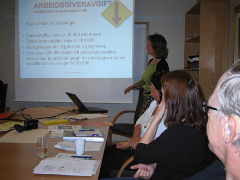 To personer fra Skattebetalerforeningen informerte i to timer, om skatt, merverdiavgift, momskompensasjon osv.