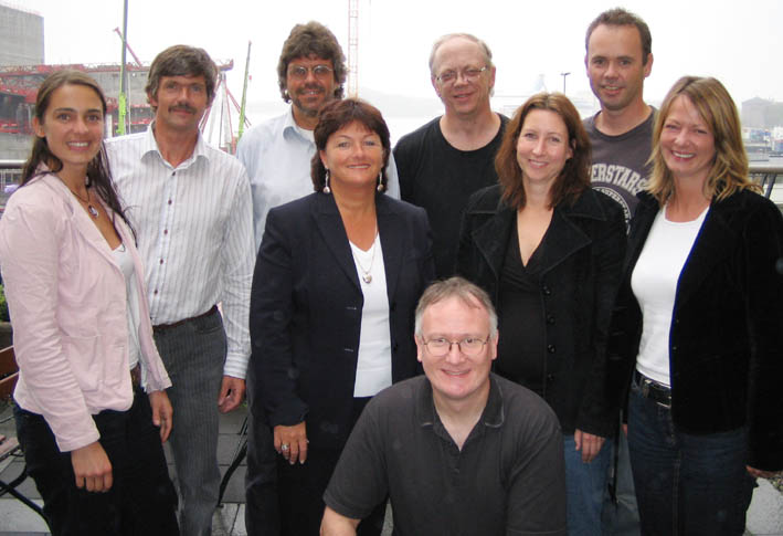 Bak fra venstre: Lena Tønder (organisasjonssekretær Stavanger Døveforening), Rune Anda (daglig leder Bergen Døvesenter), Leif Gunnar Kvernberg (daglig leder Møre og Romsdal Døveforening), Bjørn Egil Hammerlund (organisasjonssekretær Telemark Døveforening), Tom Harald Dahl (fylkessekretær Døves Fylkeslag Nordland). Midterste rekke: Sissel Gjøen (generalsekretær Norges Døveforbund), Bente Rosnes (daglig leder Trondheim Døveforening), Gunn Kristin Selstad (kultur- og informasjonskonsulent Bergen Døvesenter). Nederst: Vidar R. Sæle, Oslo Døveforening).